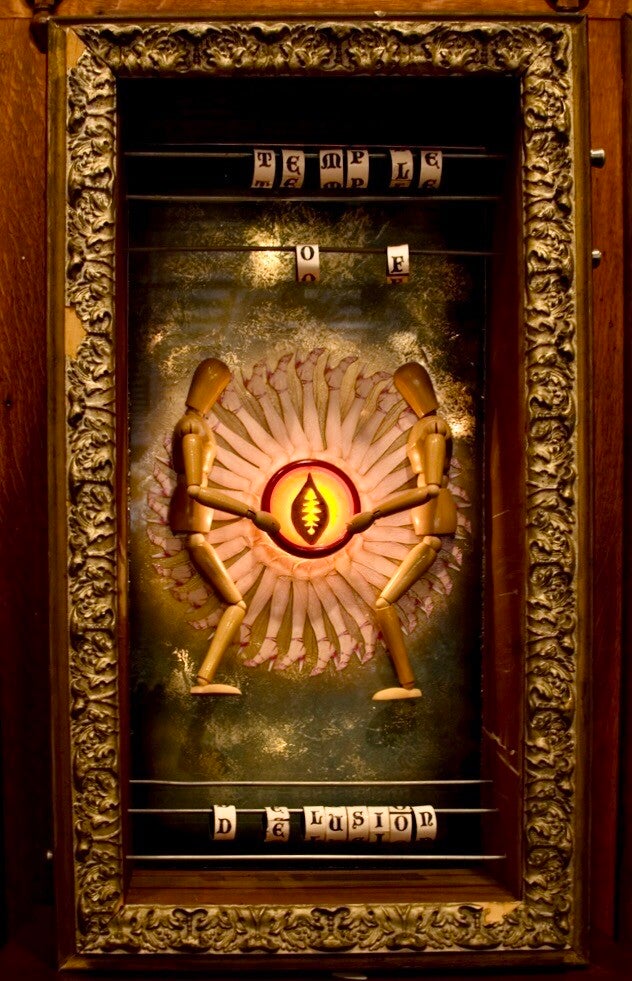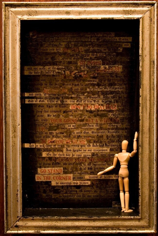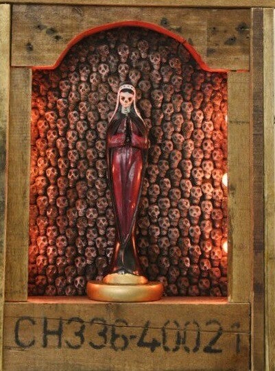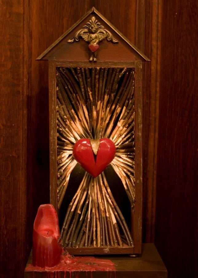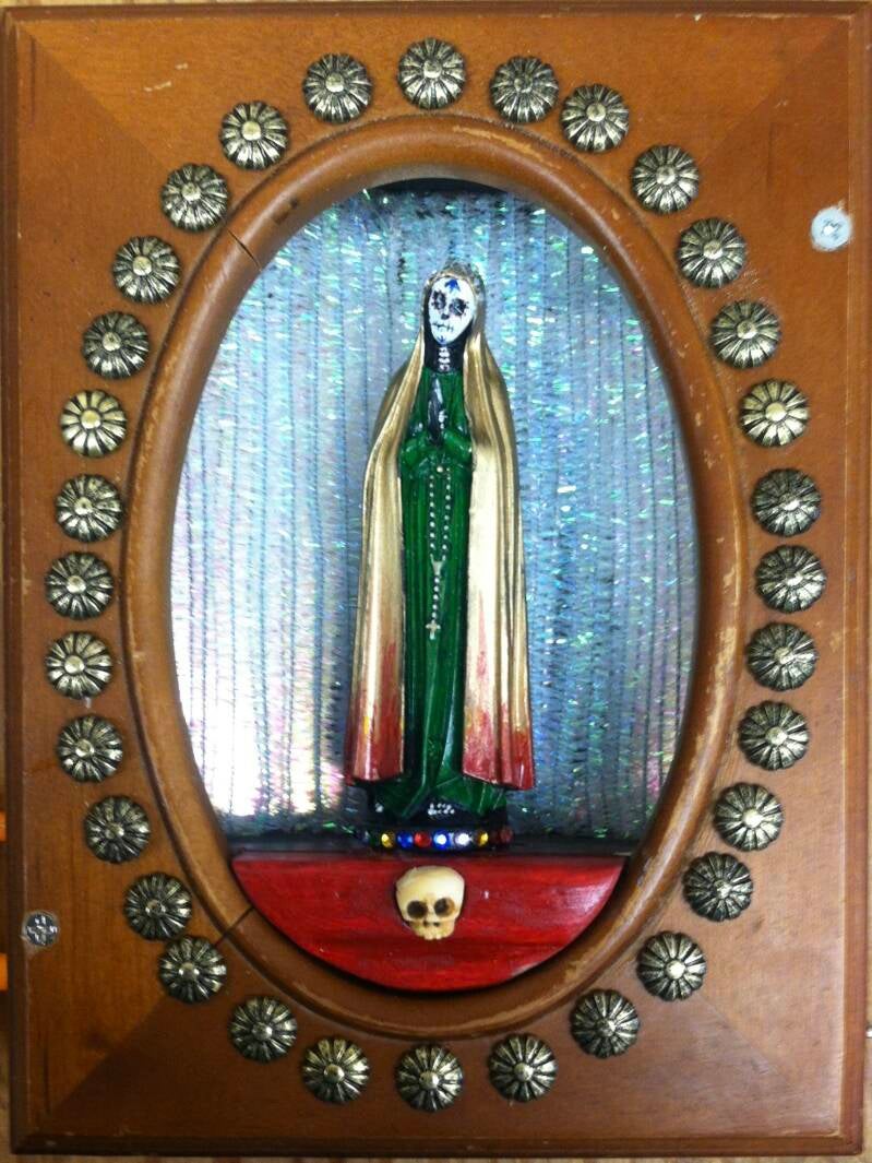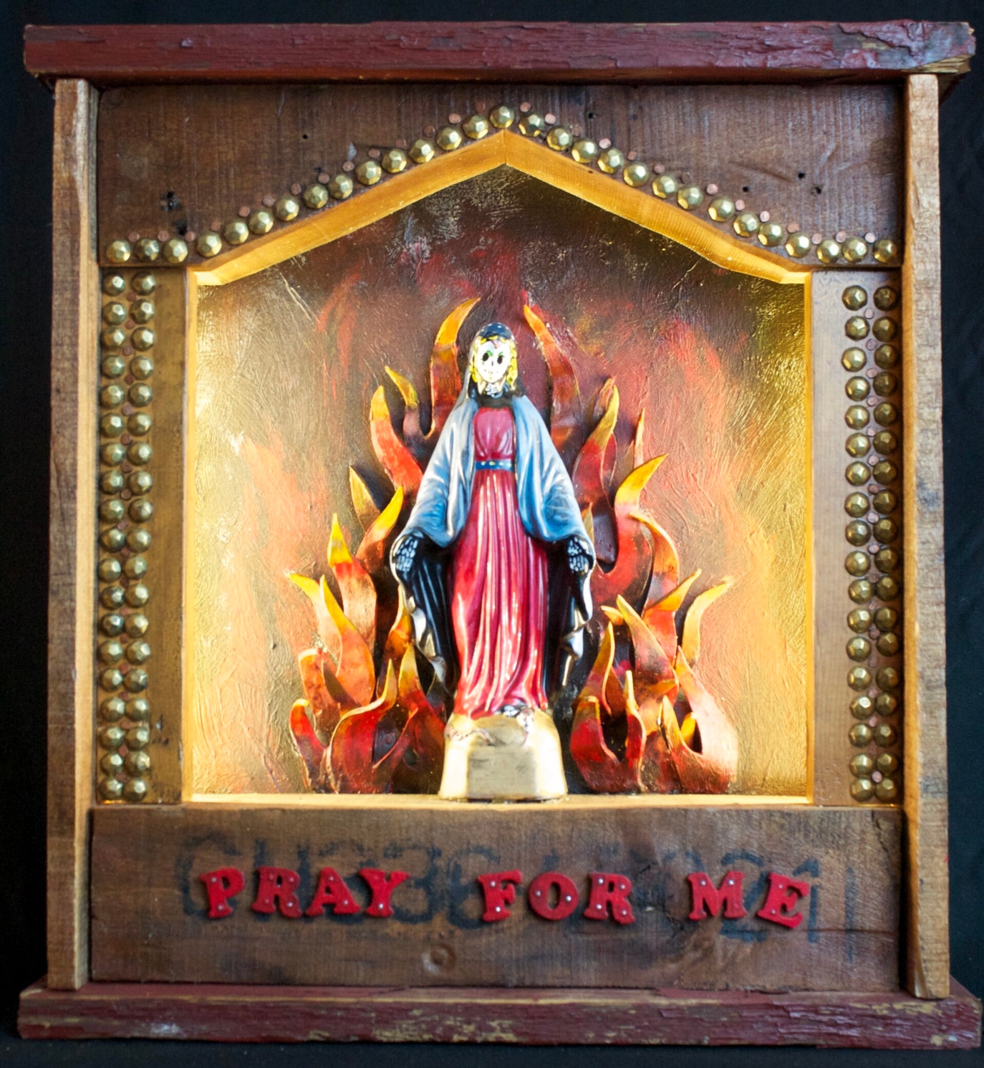 Assemblage pieces inspired by Día de los Muertos iconography and devotional shrines.